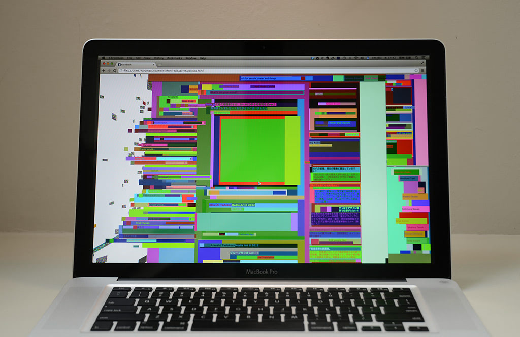 HTML5-Tweaker-Proxyは、見慣れたウェブサイトに「ひとひねり」を加えるパフォーマンス。ウェブサイトはねじれ、バラバラになり、叫び、その変わり果てた姿は過剰な自分自身に溺れてしまったかのよう。私たちが日ごろ親しんでいる視覚的なマナーのほとんどは、文化に属するもので、技術的な必然によるものではない。インターネット以前から存在した装飾の習慣は、ハイパーテキストのアイディアと結びつき、今日の姿となった。私たちが情報に期待する表面上の上品さ、信頼感、下世話さは決して不変のものではないはず。