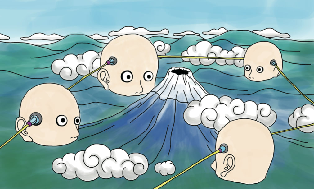 This work aims to realize a interface which snatches our normal visual perception, and serves a simulated experience to be a giant with a large scale parallax. We use images sent by two live cameras placed far apart from each other. As its audience can control them over the Internet, the interface will behave as if a giant is looking at a large mountain with his/her virtual eyeballs.