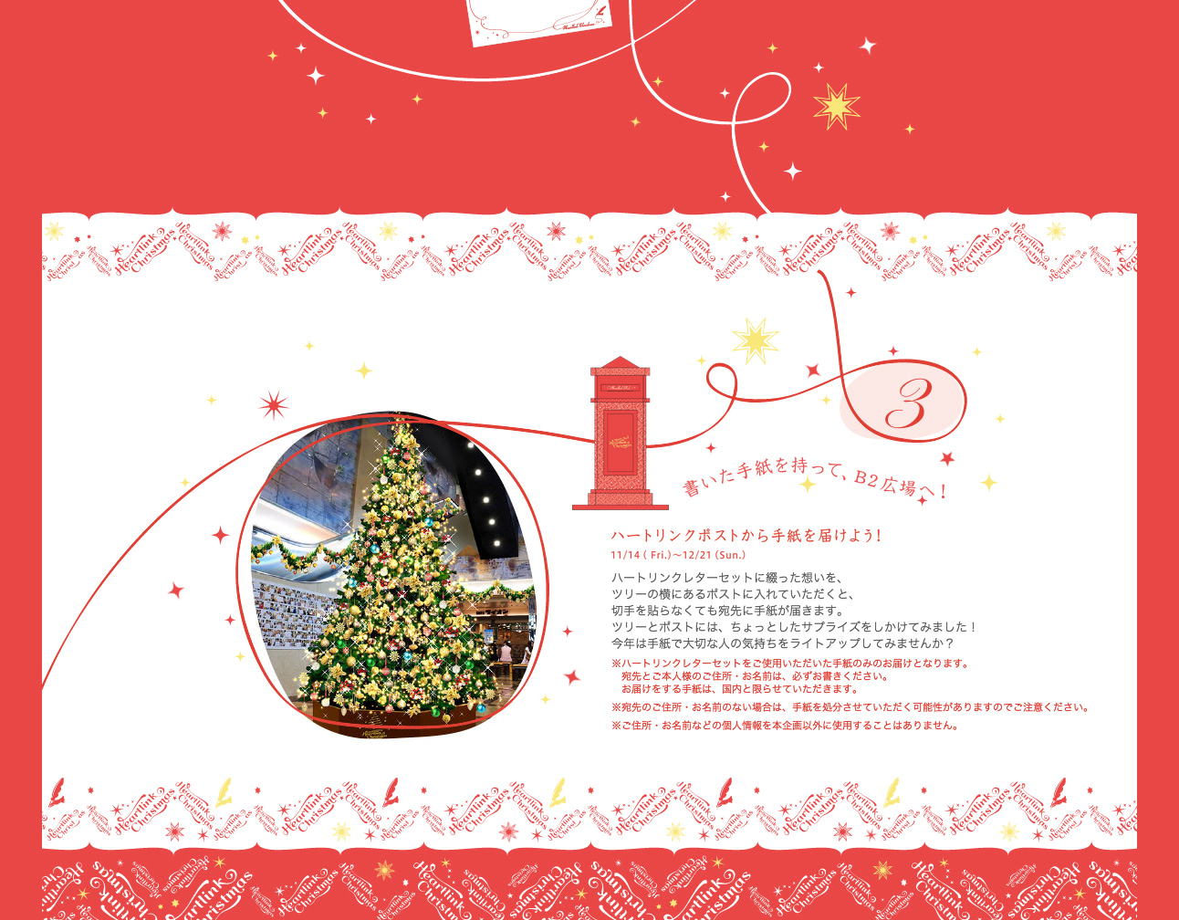 横浜のショッピングセンターJOINUS The DIAMONDのクリスマスキャンペーンサイトで、「Heartlink Christmas」というテーマを主として、「手紙で気持ちを伝える Write up! Heartlink Christmas」プロジェクトの告知を行った。