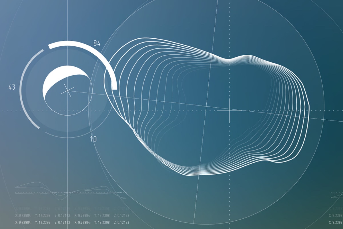 ワイヤレス通信でリアルタイムに送られてくるセンサーからのデータをダイナミックなグラフや色の変化などシンプルな構成で表現。靴を履いている人のアクションやフィードバックの伝わりやすさ、展示会場での見栄えなどを意識した。