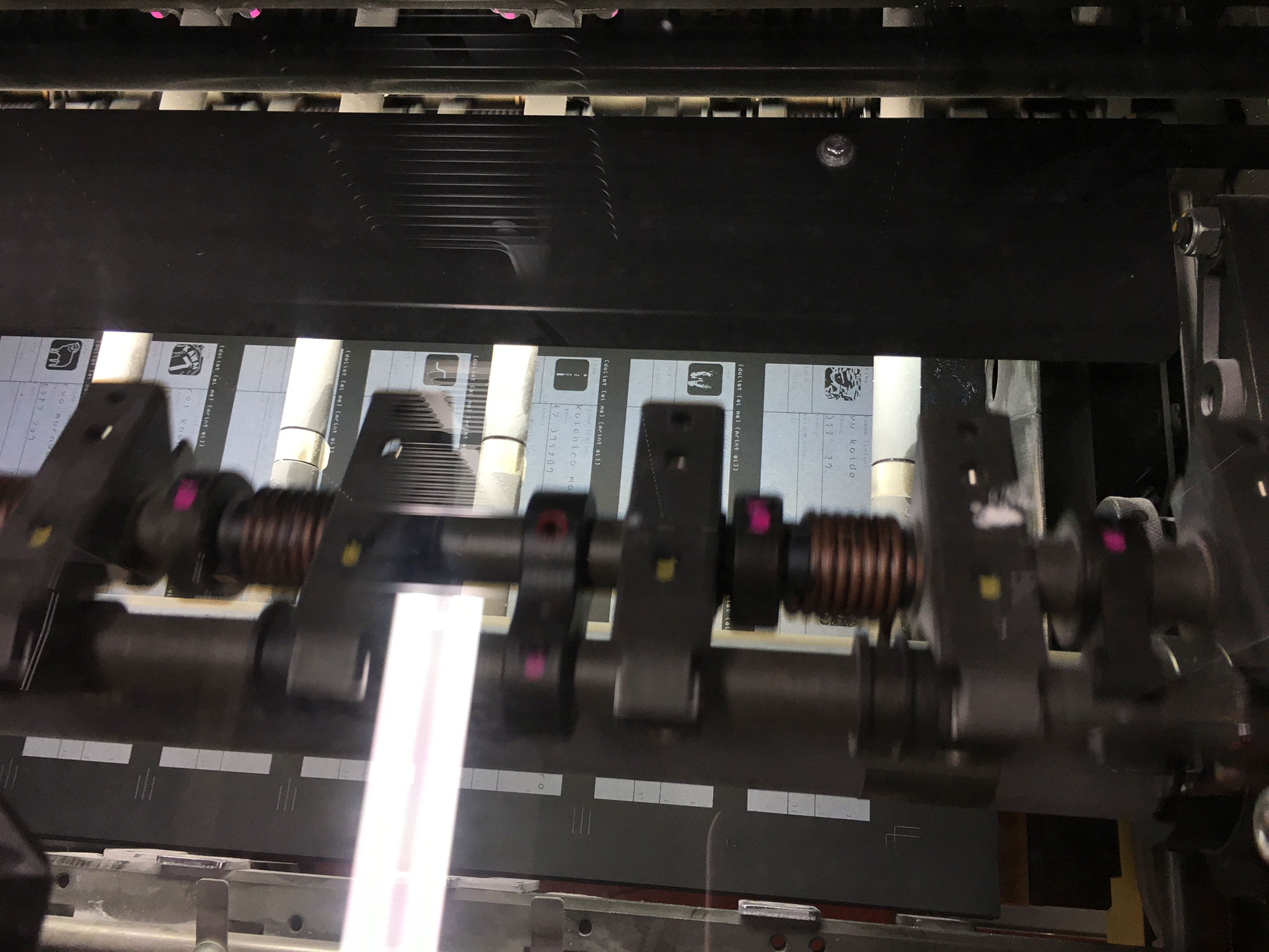 新しい名刺を作るためのリサーチをする中で、プログラミングをして表現を行う私たちの「ご先祖様」とのつながりを表現する、というテーマが明確になっていきました。「ご先祖様」とは、18世紀のジャカード織機 (プログラマブルな自動織り機) のパンチカードに始まって、ウェブブラウザに至る、画像技術、計算機、放送や通信のテクノロジーの歴史です。 今回の名刺では、画像技術の「ご先祖様」としてフィスオートメーション (OA) の技術に注目し、ジアゾ式複写機 (ブループリント) 、OCR 書体 (光学読み取りに対応する等幅書体) 、製図ステンシル、ドットプリンタ向けの帳票フォーマットなどを調べました。そして、20世紀中頃から後半にかけて主流だった技術に特有の制約に注目し、その美的な価値を独自に解釈することができないかというアイディアに至りました。ブループリントの青から白にいたる階調、低解像度でも明瞭さを保ち、機械も人間も共通して読むことを可能にする書体、低コストで大量のバリエーションを作るための厳格なグリッドレイアウトなどが、特に私たちを惹きつけました。