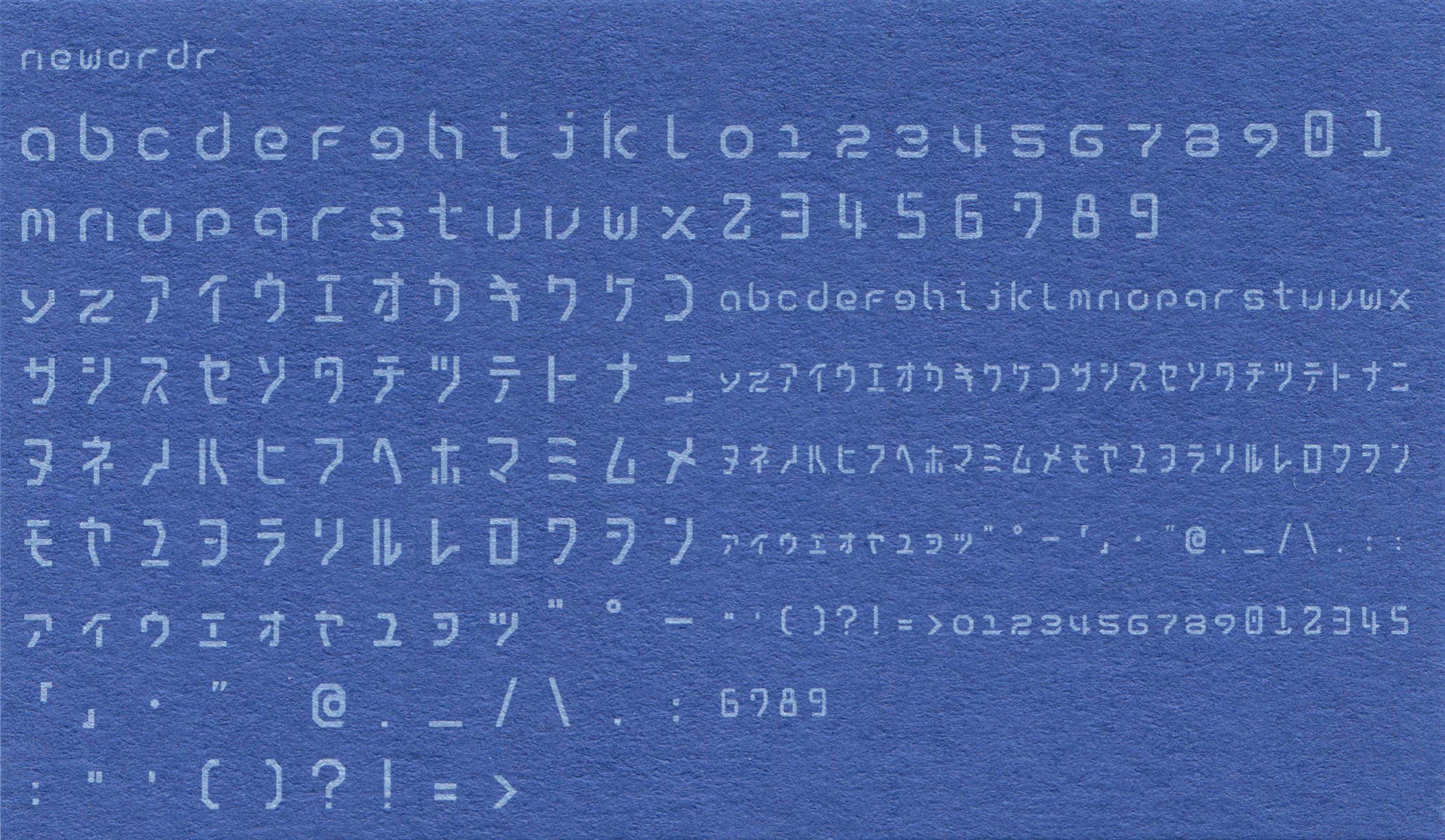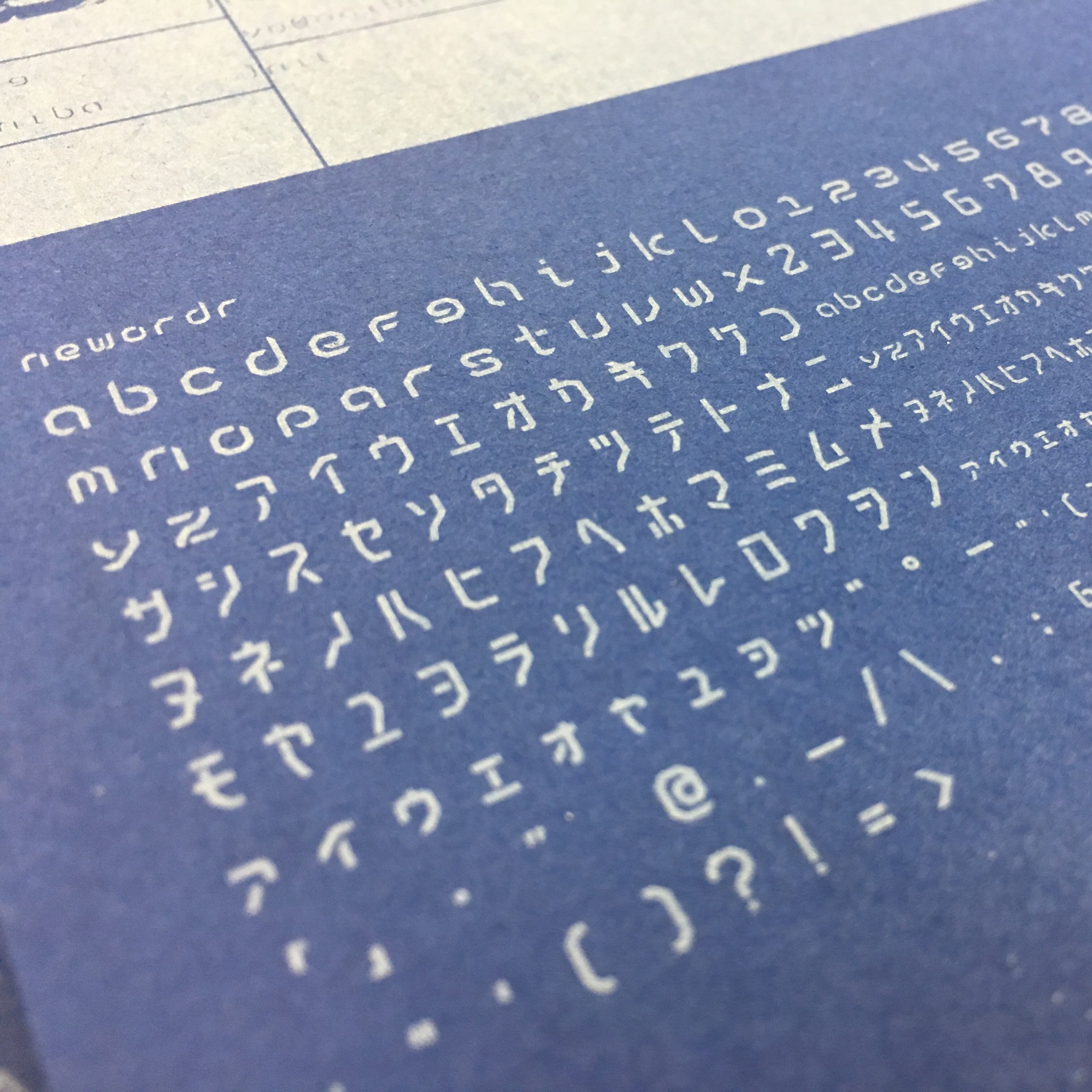 まず 3mm x 2mm のメインの文字サイズを決め、そこから 1行32文字 x 10行 のグリッドとカードサイズが決まりました。そのグリッドを使ってレイアウトを検討しつつ、並行して等幅の書体を作り、最終的に完成したレイアウトに書体を入れ込んで完成させる、というプロセスで作業を進めました。OCR 書体を参考にして、カーニングを行わないことを前提の書体を作ることと、グリッドに対して厳密で、文字が並ぶ時の折り返しなどに違和感が残るようなレイアウトを目指しました。