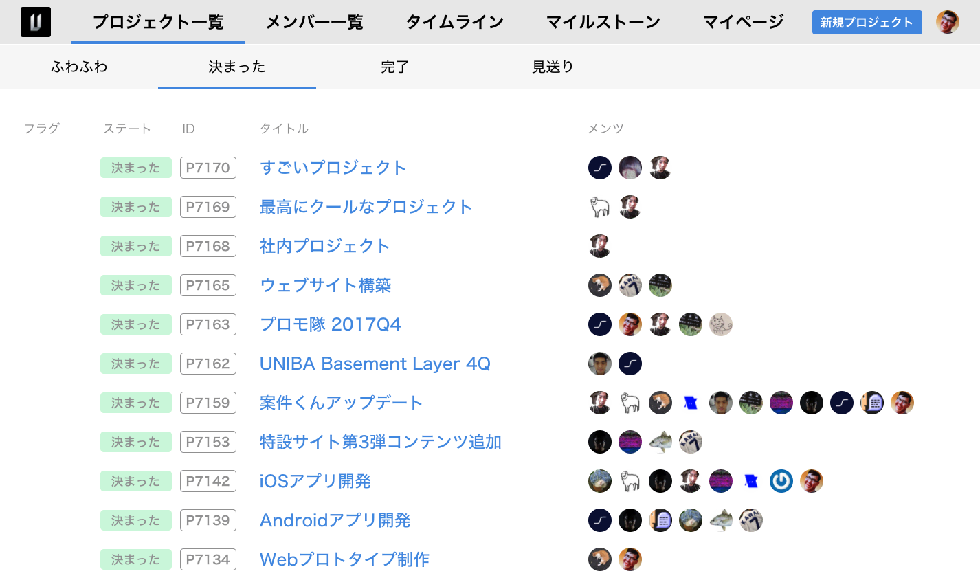 案件くん3は、ユニバの社内で並行するプロジェクトの状況を一覧把握し、どのプロジェクトにユニバのメンバーのうち誰が、どの程度稼働するかを把握するための自社サービスです。 ユニバでは、自分たちの仕事の進め方を自分たちでデザインするということを、以前より行っており、この案件くん3はまさにそれを体現しているプロジェクトです。ユニバの仕事の進め方の特徴的な部分について、案件くんを開発していく上で、自分たちが再認識することなどもありました。