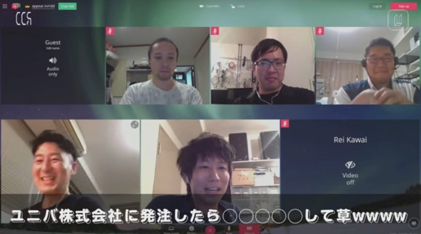最高にナウいビデオチャットツール「appear.in」を活用した双方向参加型ストリーミング番組です。