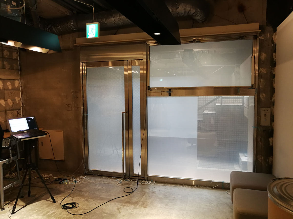 富士通デザイン株式会社さまのFace Galleryにて調光フィルム演出システムの製作を行いました。調光フィルムは電圧を加えると透明になるフィルムで、以前弊社が演出製作を担当しましたEQ Houseで使われている調光フィルムと同じものを使用しており、 今回はさらに人物のモーションと声によるインタラクティブ演出を加えることによって、人と調光フィルムをより密接に連動させた演出内容に仕上がっています。