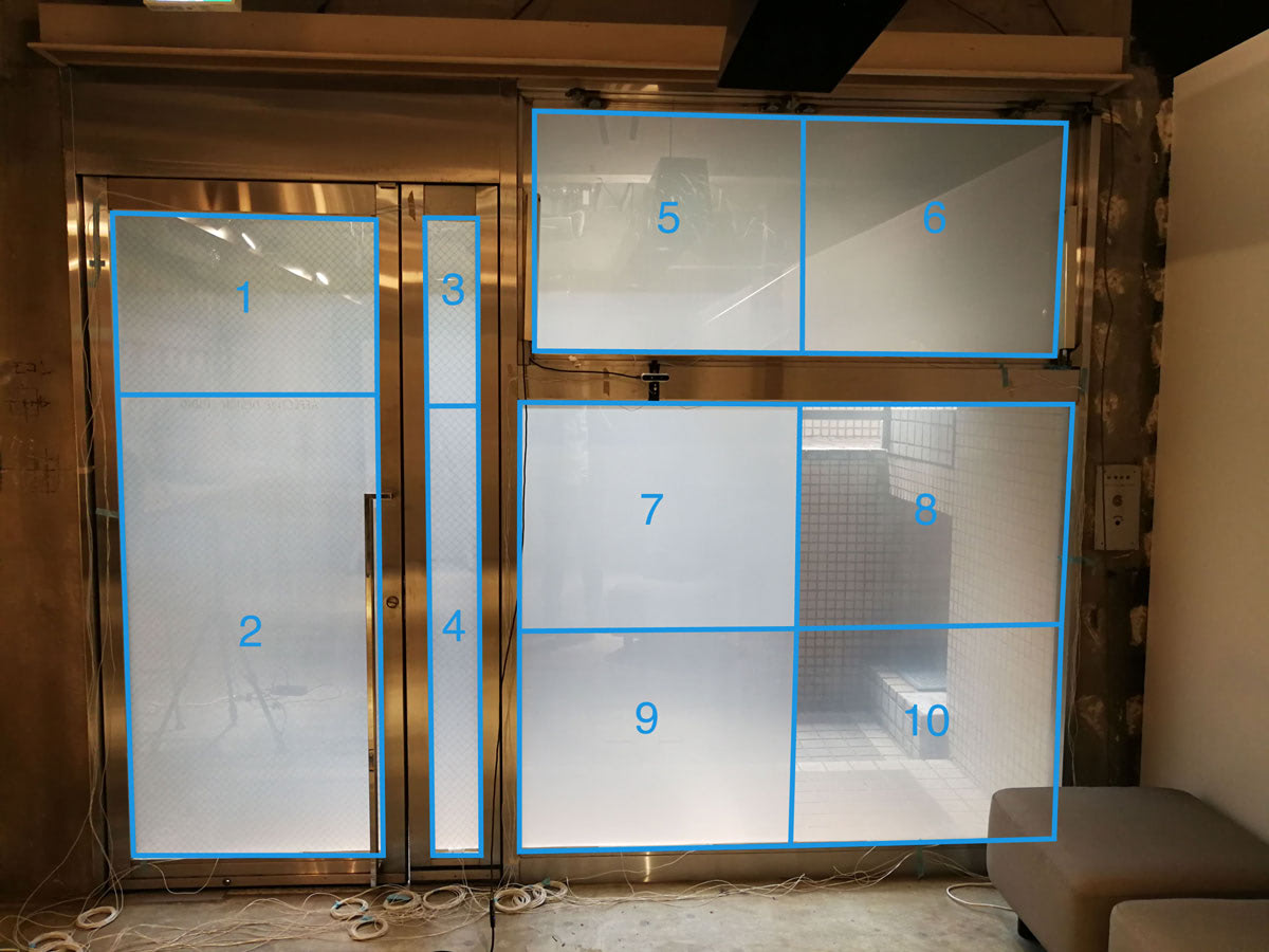また調光フィルムは1枚の窓に複数枚のフィルムを並べて張り合わせてあり、計10枚のフィルムは独立した制御が可能になっています。