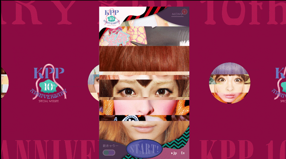 きゃりーぱみゅぱみゅ10周年を記念した特設ウェブサイト。 きゃりーぱみゅぱみゅのアートワークをスロットマシンで揃えたら…何かが起きる!? ユニバは実装全般を担当しました。IN FOCUSさんと演出・アニメーションについて綿密にコミュニケーションを取り、楽しく体験できるウェブサイトに仕上げることができました。 メインコンテンツのスロットマシン以外にも、インタビュー、ディスコグラフィー、著名人からのお祝いメッセージなどなど、きゃりーぱみゅぱみゅに関する情報が盛りだくさんなので是非ご覧ください。