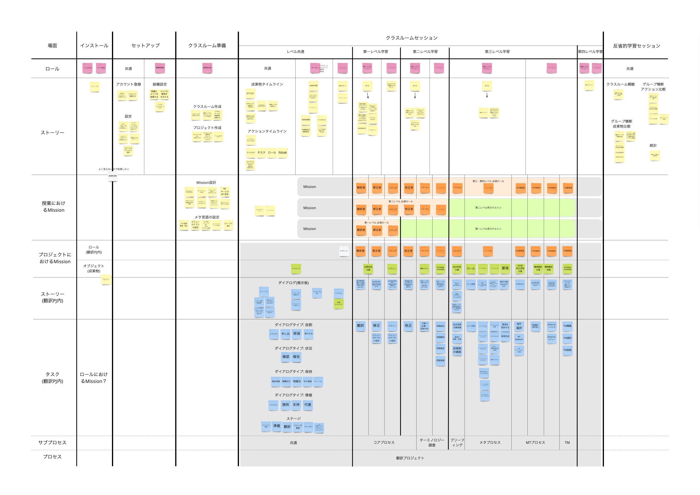 開発の初期フェーズでは、User Story Mapping の手法を用いて、プロダクトの全体像把握と解決すべき課題の探索を行いました。